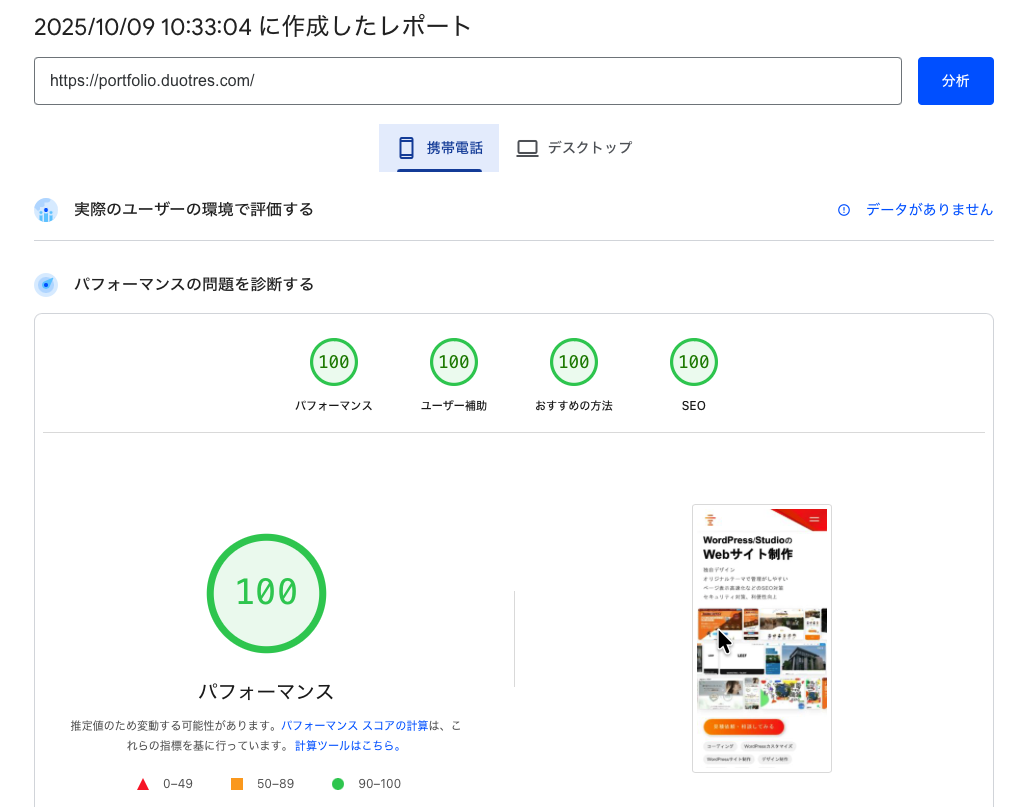当ポートフォリオサイトのトップページリニューアルの際に、PageSpeed Insightsを使ってSEO対策を行いました。